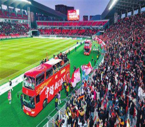 在一阵阵“辽宁冲超”的欢呼声中,搭载着辽宁铁人队将士的花车在铁西体育场内绕场一周,将辽沈足球胜利的欢庆氛围推向高潮。