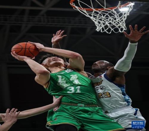 12月15日,浙江方兴渡队球员塔克(右二)在比赛中上篮受阻。新华社记者 潘昱龙 摄