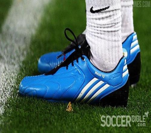 在最初的Tunit时代,梅西特别喜欢穿着定制的F30i球鞋,偏好固定鞋底。这一设计支持了他细腻的控球和精准的射门,这些特点也成为他在那个时期比赛的标志,包括2009年欧冠决赛中的表现。