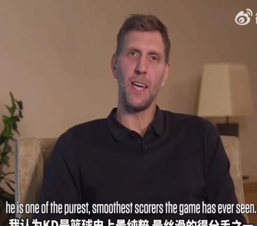 诺维茨基接受采访时表示:“虽然被杜兰特超越我不太开心,开玩笑啦!我认为杜兰特是我见过的篮球史上最纯粹的得分手之一,最丝滑的得分手。他就是个7英尺的大块头,虽然他不承认,如此身高却拥有2号位的细腻技术。顶级的终结,湿滑的持球跳投,还有各种强投能力。讲道理,一对一根本没人防得住他,他总是能制造出绝佳的出手机会。他的技术就是这么细腻,身高臂长,完美的出手节奏。见证他的职业生涯简直就是一种享受。还是那句话,他是篮球史上最纯粹的得分机器。恭喜KD,继续冲吧!名次再往前挪几位吧,继续加油!”