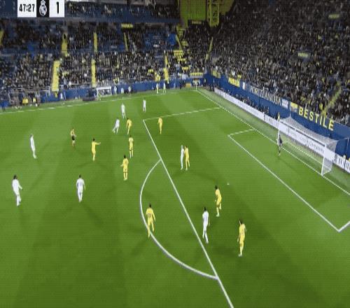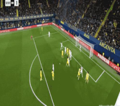 第62分钟,比利亚雷亚尔的任意球设计巧妙,莫雷诺身边无人,居然将球打高,黄潜自家球迷都摊手表达不满。