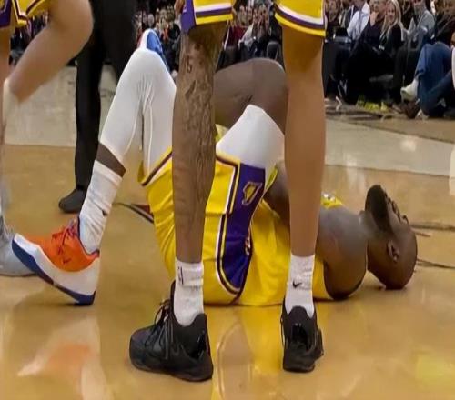 这场比赛勒布朗在熟悉的球馆还差一点受伤,第四节一次突破落地疑似踩到了朗佐-鲍尔的脚背导致左脚踝有一个反关节,41岁的勒布朗倒地捂着脚踝,只打了4分钟就被换下,雷迪克提前8分钟放弃比赛,这让老詹、东契奇两人都有了恢复的时间。