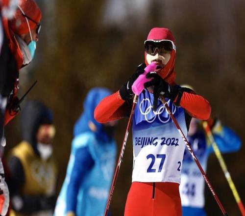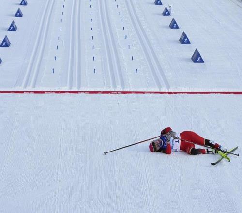 2022年2月10日,北京冬奥会越野滑雪女子10km传统技术比赛,池春雪完赛后躺倒在终点处。