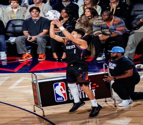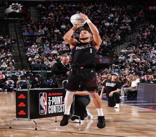 利拉德第二个出场,前16个球命中了14个,包括一个4分的花球。后面准度有所下滑,最终仍有29分。布克一上来也不遑多让,连中九个球,后面也投进了一颗四分球。还剩三个花球的时候,布克拿到27分,剩下三个花球投进一颗追平利拉德,投进两颗就拿到冠军。然后布克三个花球全部投丢,成为三分大赛历史非常戏剧性的一幕。