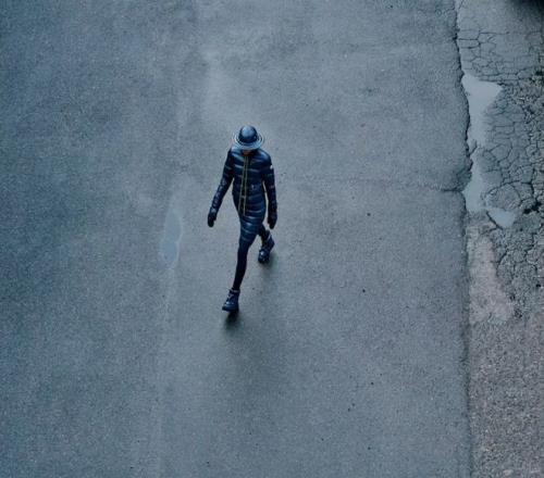 这套亮黑色羽绒服也是完全不走寻常路,没有一般羽绒服的臃肿笨重,裁剪和质感都很高级。