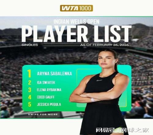 我们今天关注的重点是即将在3月4日-15日在美国加州进行的2026印第安维尔斯站(巴黎银行公开赛),作为年度首项ATP和WTA均为1000级别的联合赛事,今年男女单打分别由现任世界第一阿尔卡拉斯和萨巴伦卡领衔。