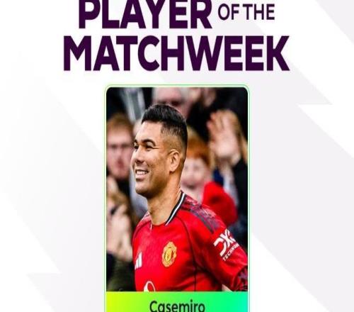 传射建功,卡塞米罗当选英超第24轮最佳球员 -